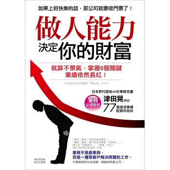 億萬富豪給子女的一生忠告![]() | 做人能力決定你的財富:就算不景氣,掌握6個關鍵,業績依然長紅!![]() | 常勝思考![]() | 就算被討厭,也要勇敢說出來的100句話![]() | ||||