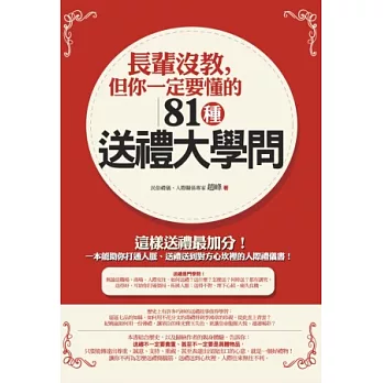 改變人脈關係的14堂課![]() | 長輩沒教,但你一定要懂的81種送禮大學問![]() | 把心機用在對的時機(文庫版)![]() |